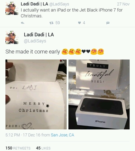 Who said Love is not a beautiful thing? A lady has made her boyfriend's Christmas wish came early as she surprises him with a brand new device. Lovely!