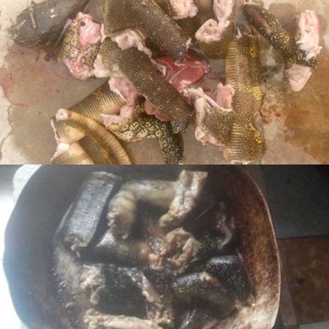 A happy man has publicly flaunted how he prepared a Monitor Lizard he caught for dinner as he celebrates the season with the 'delicious' meat.